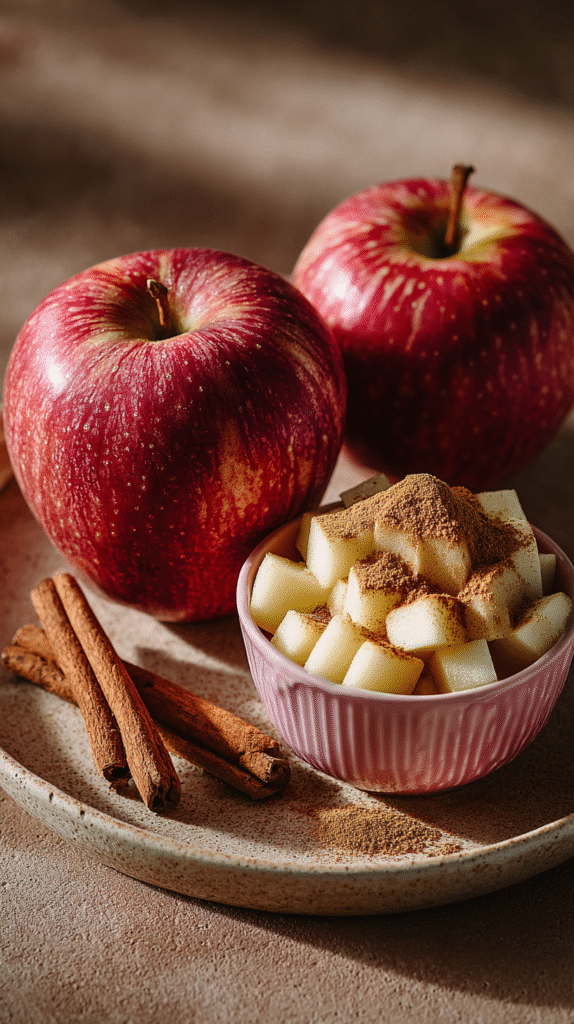 Apple double-down: Fresh apples plus a crunchy cinnamon-sugar topping give contrast—soft inside, crackly outside. Hello, cravings.
