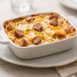 This casserole checks all the boxes: comforting, flavorful, and practical. The combination of browned sausage and sharp cheddar gives it richness, while eggs bind everything into a tender, custard-like bake.