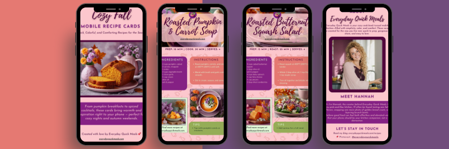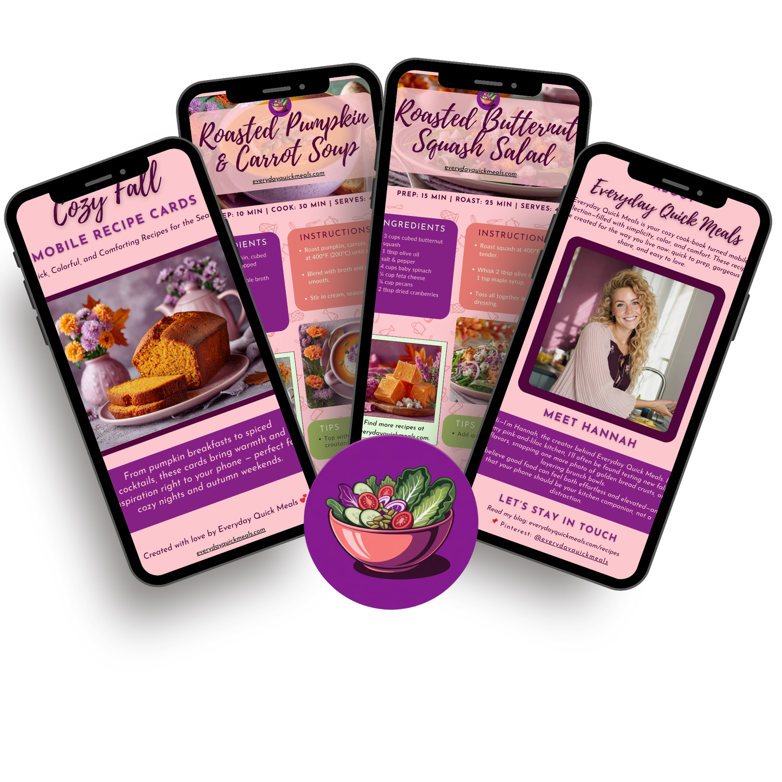 Each day, you’ll receive a beautifully designed recipe card featuring quick, seasonal dishes like creamy soups, comforting casseroles, and sweet fall desserts.