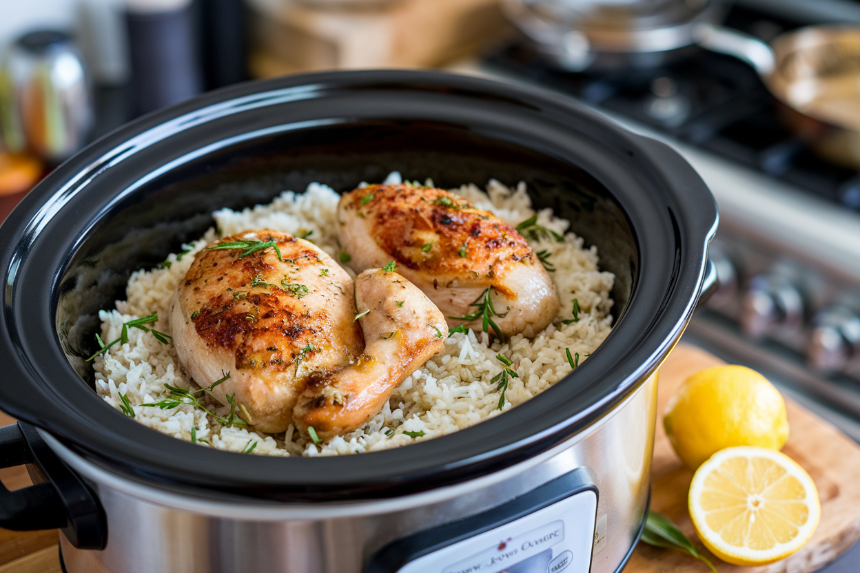 Slow Cooker Lemon Herb Chicken and Rice That Practically Cooks Itself (And Tastes Like You Tried Way Harder)