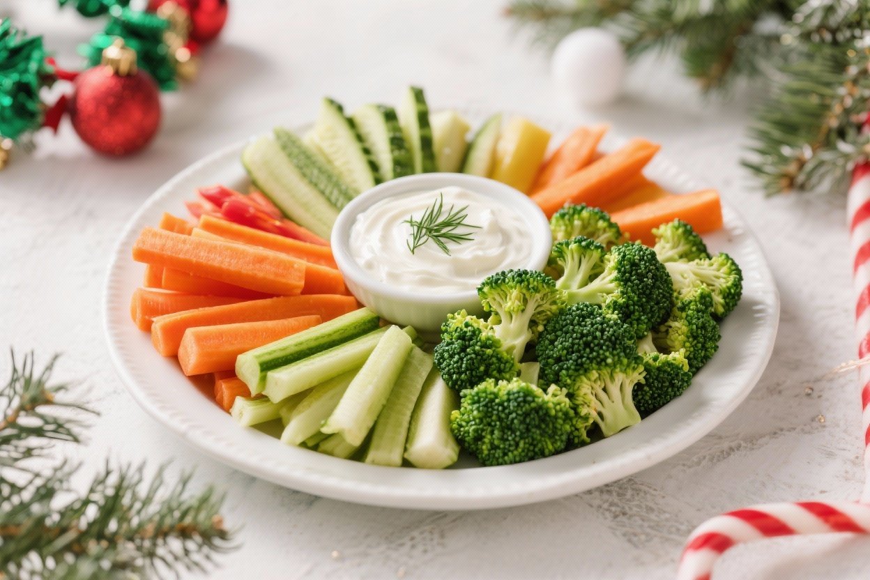 Festive Broccoli Christmas Veggie Tray with Yogurt Dill Dip - A Bright, Fresh Holiday Appetizer