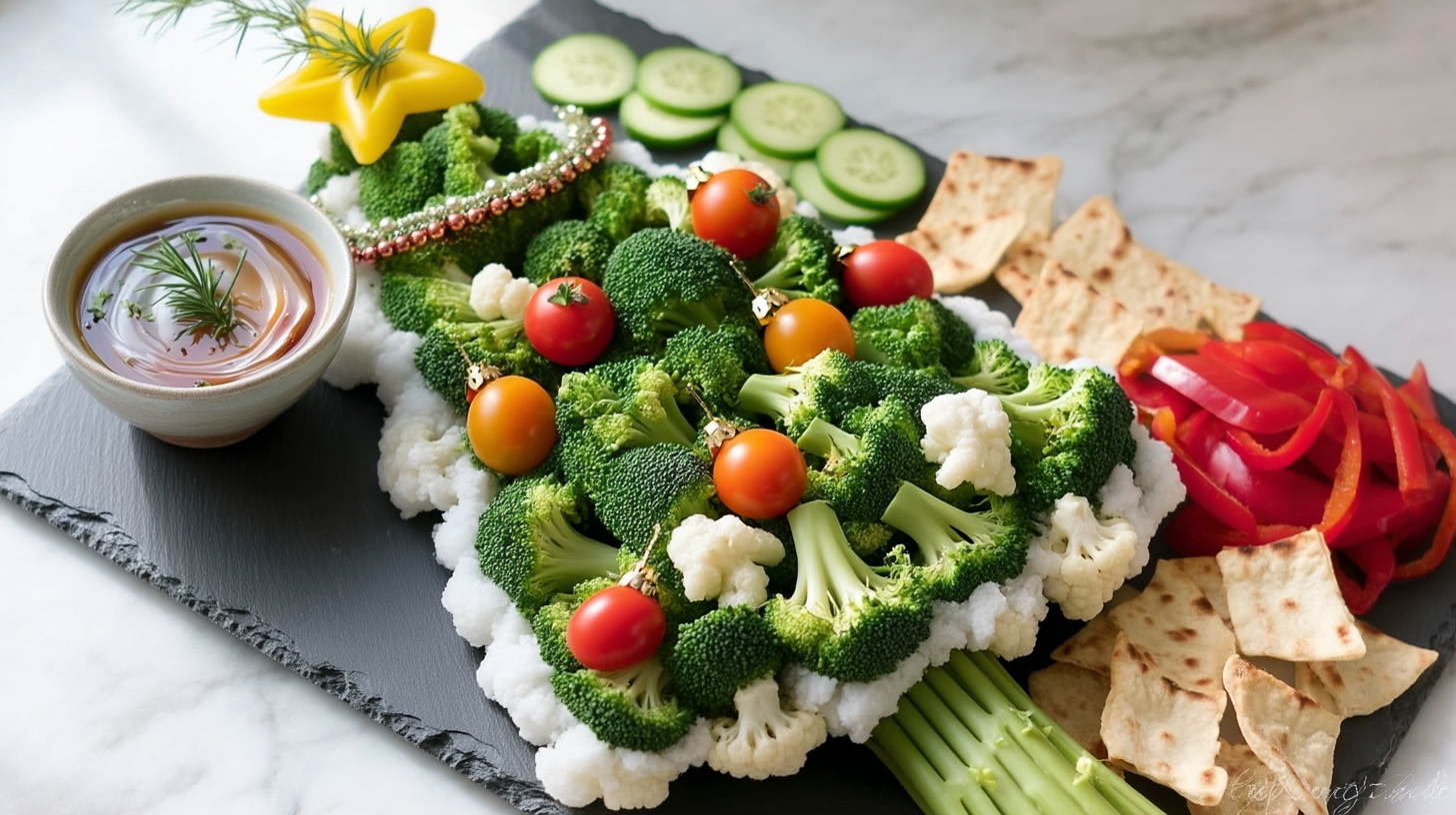 Festive Broccoli Christmas Veggie Tray with Yogurt Dill Dip - A Bright, Fresh Holiday Appetizer