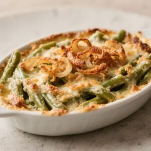 With fresh green beans, a simple homemade sauce, and a golden onion topping, it feels familiar yet upgraded. Make it your way with the variations above, and don’t be surprised when it becomes a new family favorite. Warm, creamy, and perfectly crisp on top—that’s the kind of side dish worth making again and again.